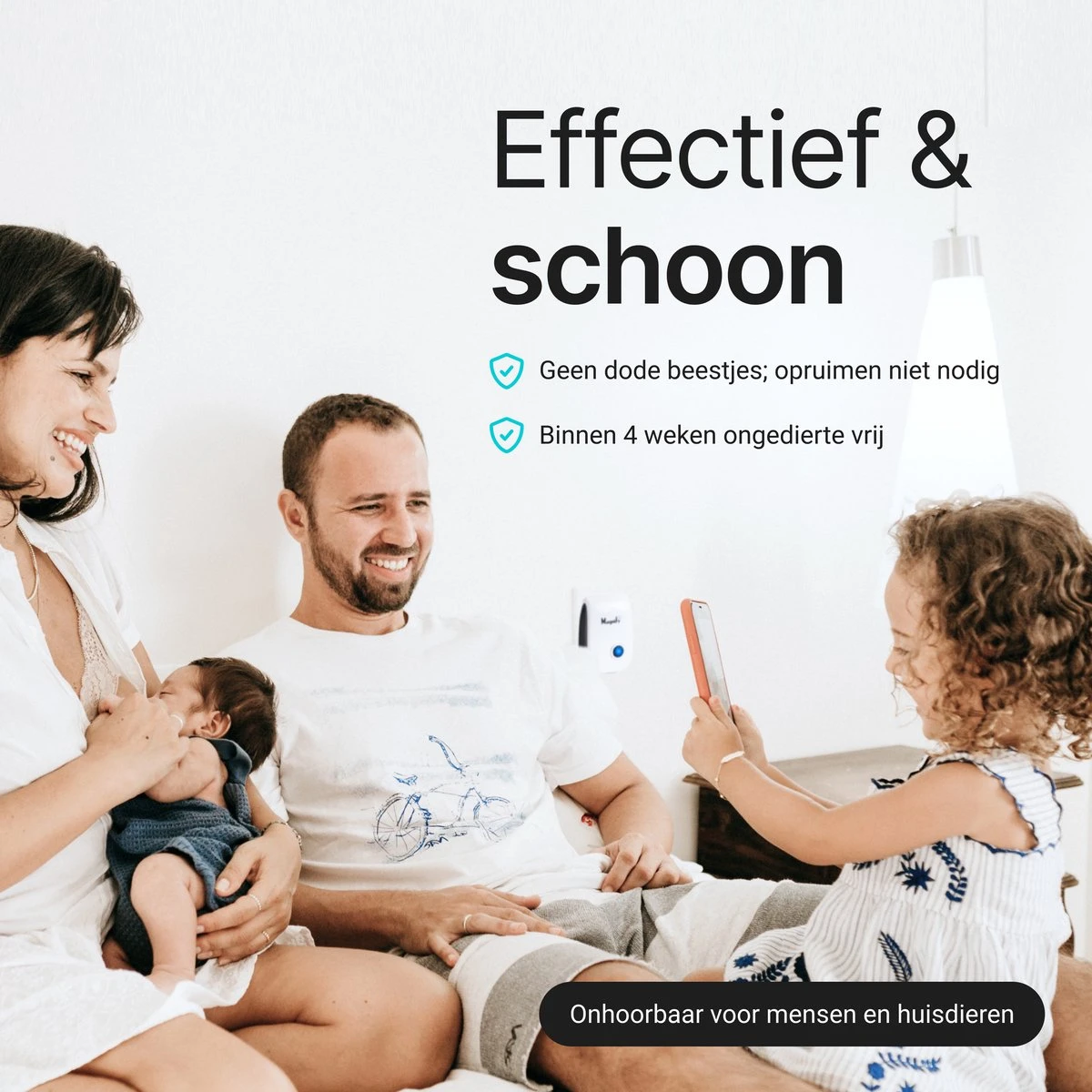 De ultrasone verjager werkt als een hulpmiddel. Door zelf bijvoorbeeld een steentje bij te dragen door geen vuil- en etensresten achter te laten en het huis schoon te houden voorkom je dat het langer duurt om de ongedierte te verjagen.