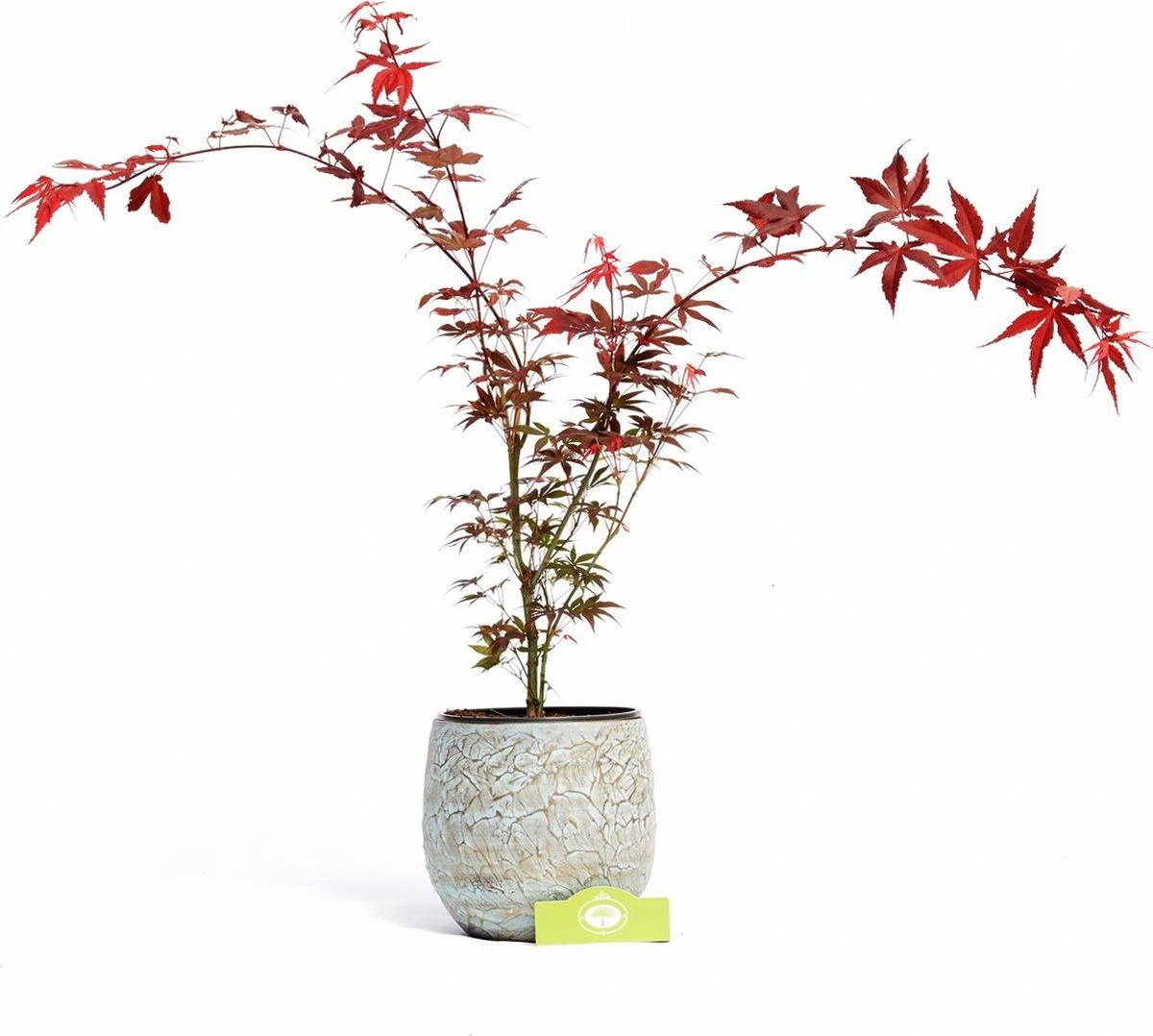 Deze Acer palmatum ‘Atropurpureum’ is een wat snellere groeier dan de gemiddelde japanse esdoorn en kan dus uitstekend in de tuin of op het terras of balkon. Deze boom heeft jaarrond mooi purperroodblad dat in het najaar naar vuurrood tot dieprood kleurt. Deze prachtige Acer zal gegarandeerd jarenlang indruk maken in uw tuin. Ze zijn volledig winterhard, zelfs bij het koudste weer, verliezen hun bladeren in de winter, om in de lente weer uit te barsten met de mooi gevormde bladeren. Ze doen het goed in lichte schaduw, omdat de hitte van een felle zon de bleker gekleurde bladeren af en toe kan verschroeien.