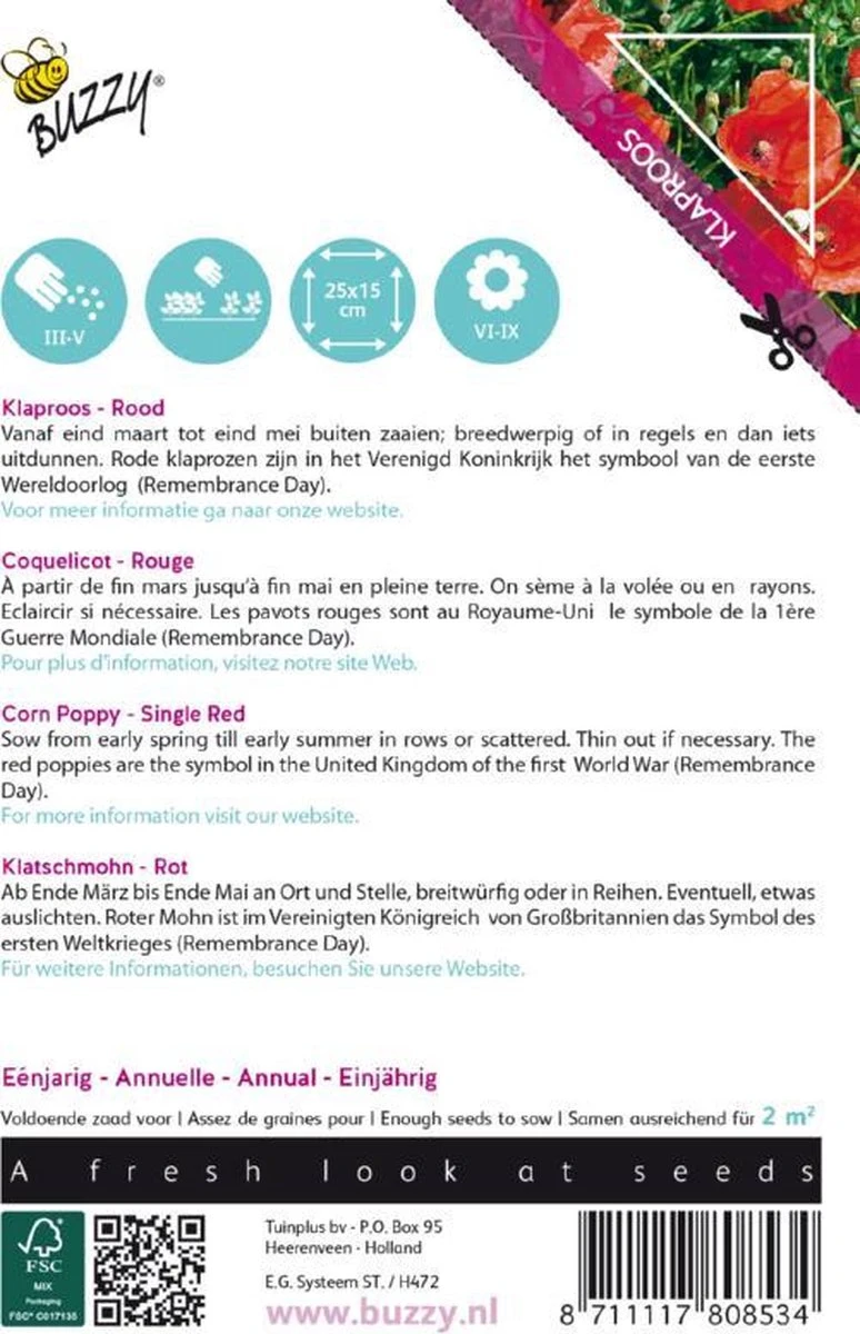 Papaver rhoeas is een plant uit de papaverfamilie (Papaveraceae). Deze plant kan tot circa 80 cm hoog worden. De bloemen zijn groot en scharlakenrood. Vanaf eind maart tot eind mei buiten zaaien; breedwerpig of in regels en dan iets uitdunnen.