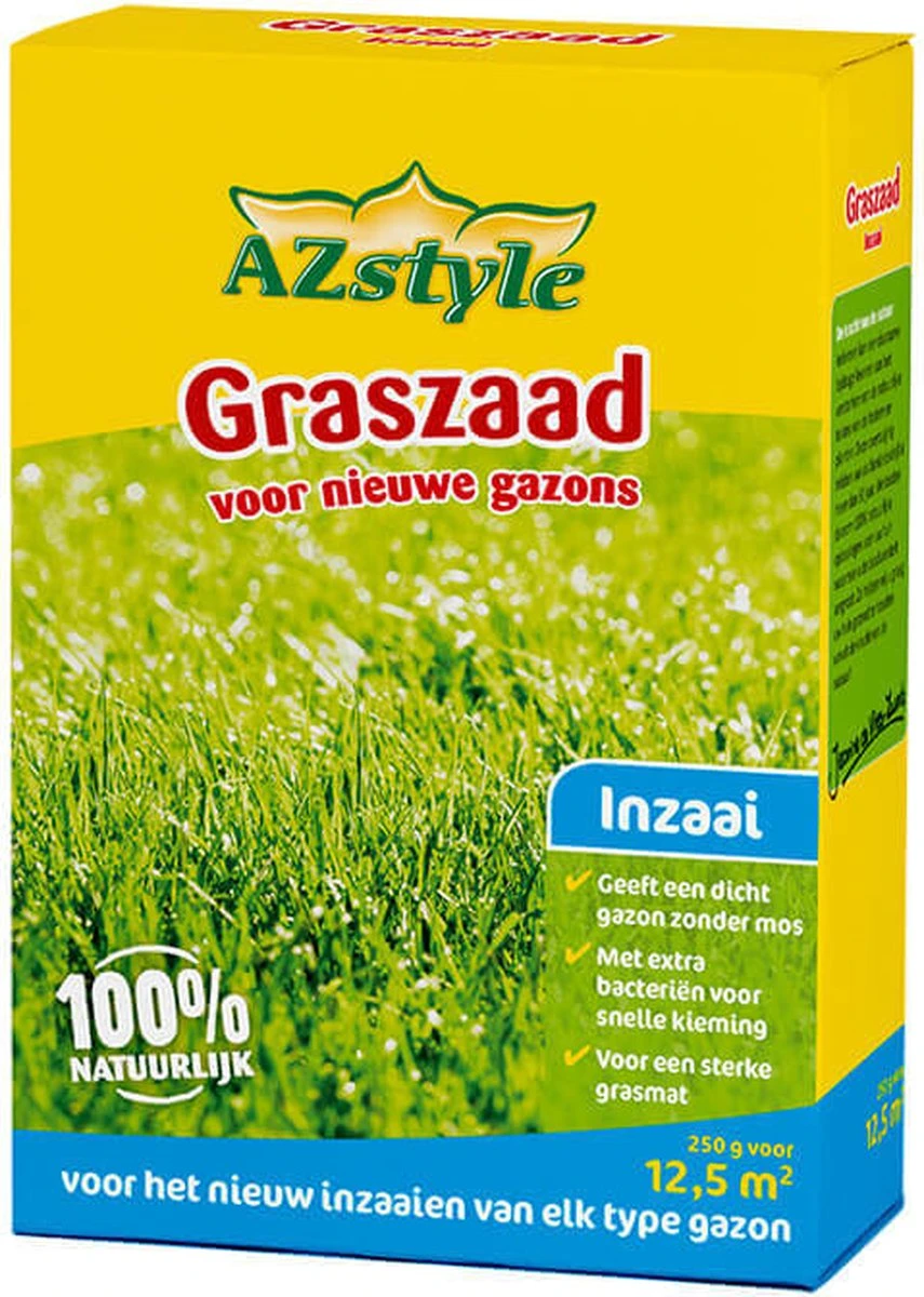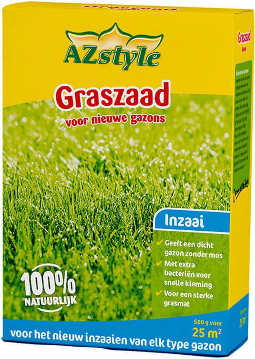 Graszaad-Inzaai is een graszaadmengsel dat is samengesteld uit grassoorten die geschikt zijn voor het inzaaien van zowel speel- als siergazons. Het is ook geschikt voor gazons die een deel van de dag in de schaduw liggen. Graszaad Inzaai geeft een dicht gazon zonder mos. Het graszaad bestaat uit verschillende grassoorten die veel zonlicht en schaduw verdragen. De combinatie van de grassoorten en micro-organismen zorgt voor snelle ontkieming en ontwikkeling van het gras. Voor een extra dicht gazon. Het kiemen van het zaad is afhankelijk van de bodemtemperatuur en de vochtigheid van de bodem. Hierdoor kost de kieming in het voorjaar meer tijd dan in de nazomer. Houd de grond na het zaaien vochtig totdat het gras is opgekomen.