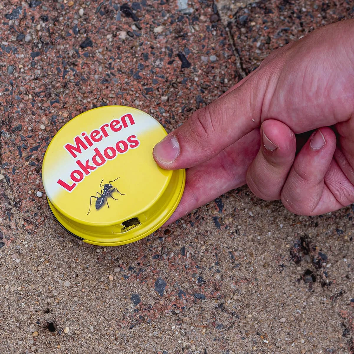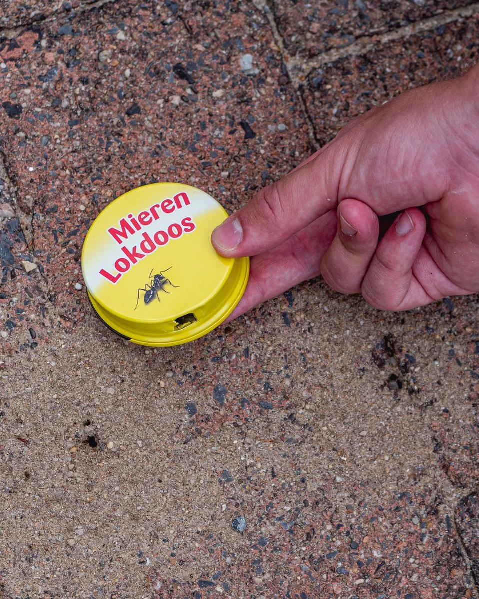 Plaats de MierenLokdoos dichtbij de mierennesten of op de looproutes van mieren, zo dicht mogelijk bij de plek waar de mieren het huis binnenkomen.