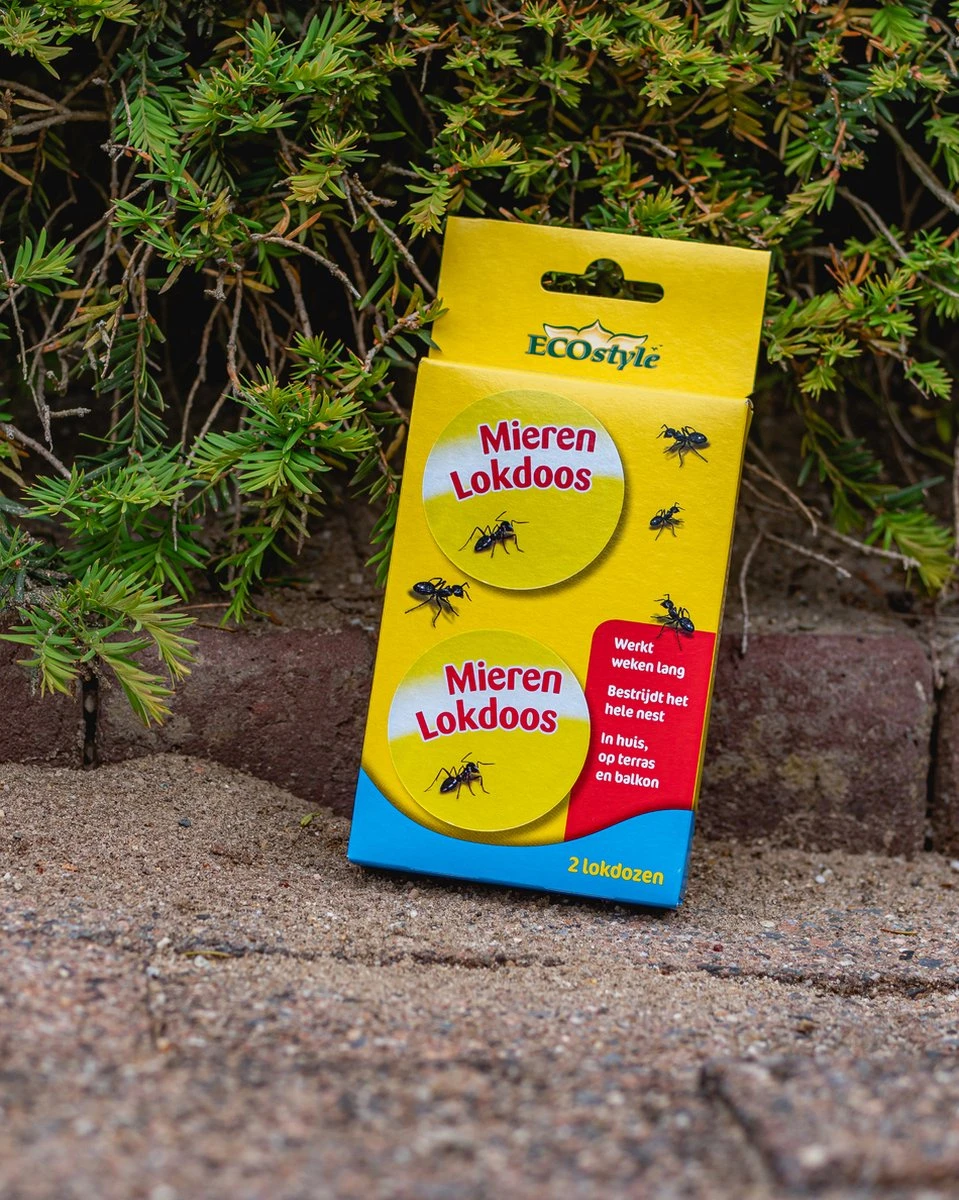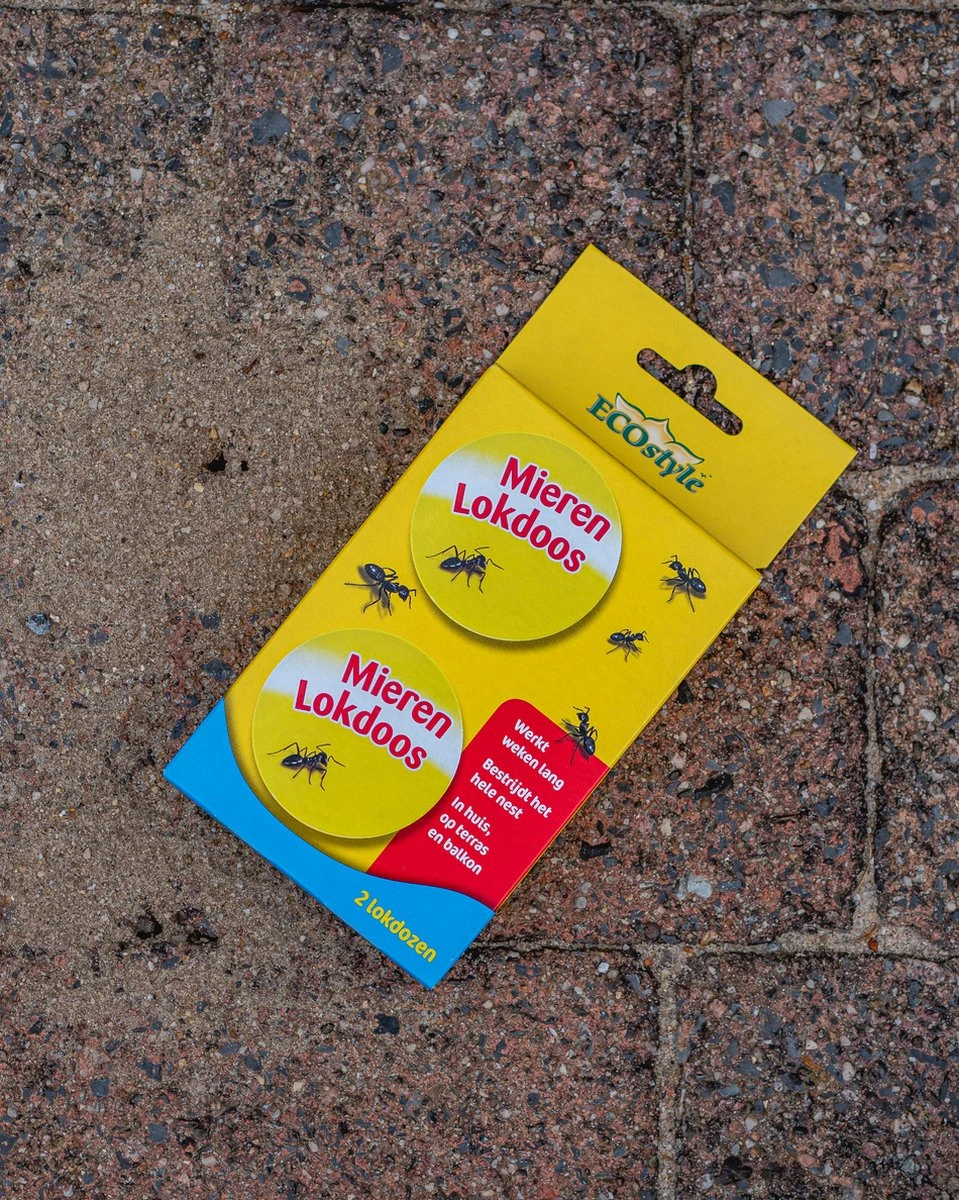 De ECOstyle MierenLokdoos is geschikt voor in huis, op het terras of balkon en bevat een effectieve stof. Deze werkzame stof wordt door de werksters meegenomen in het mierennest. Zo wordt het mierenprobleem bij de bron aangepakt. Afhankelijk van de grootte van het nest en de activiteit van de mieren kan het eventjes duren voordat de totale mierenoverlast is opgelost. Ondanks dat mieren nuttige dieren zijn, zorgen ze soms ook voor overlast. Terrastegels die verzakken, kale plekken in het gazon en zandhoopjes tussen tegels. Bestrijd ze daarom alleen als ze hinderlijk zijn.