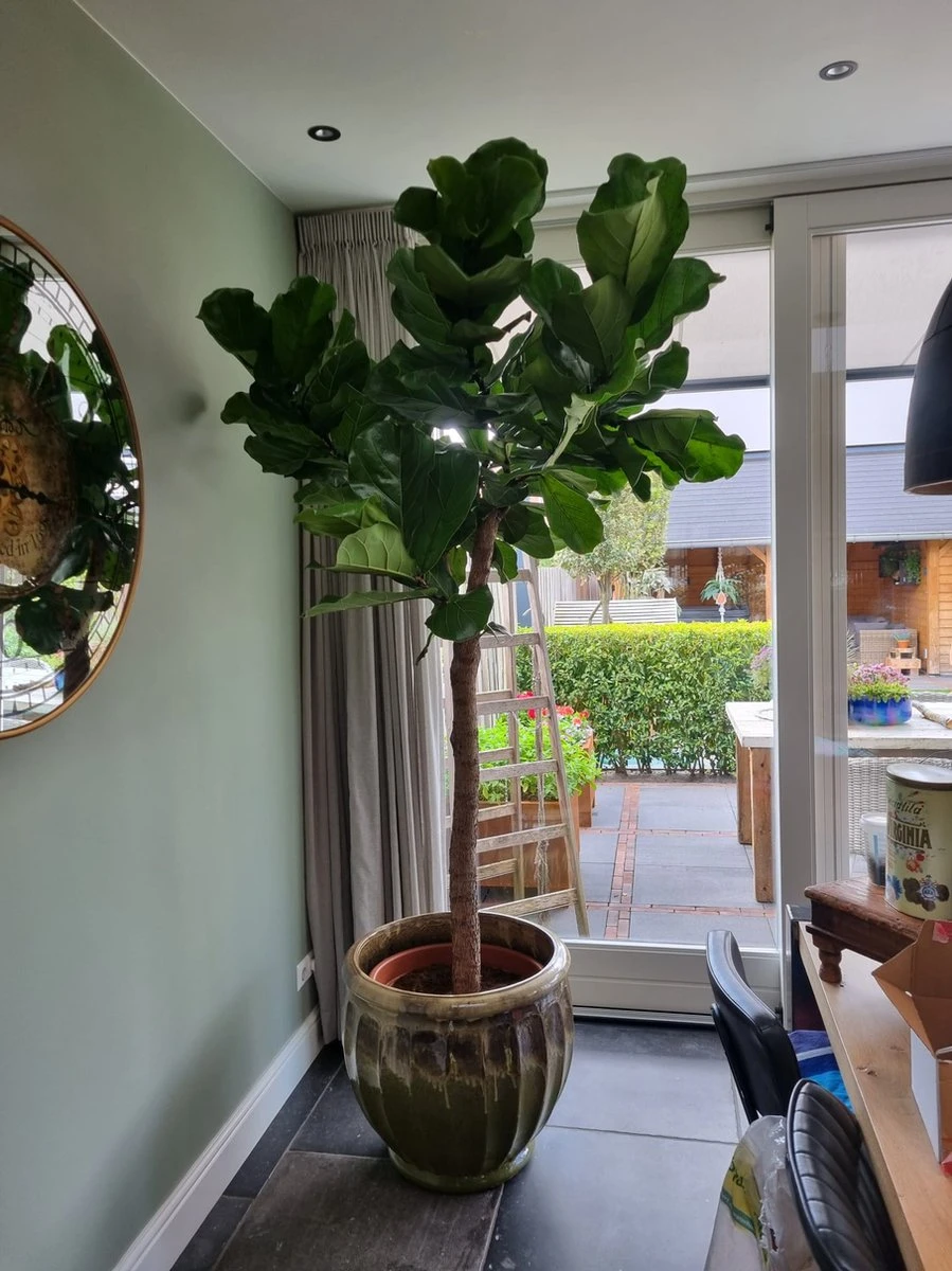 Verzorgingstips: Hoe lichter de plant staat, hoe meer water hij nodig heeft. De watergift moet dus op de standplaats worden aangepast. Zorg ervoor dat de potkluit nooit helemaal uitdroogt maar laat hem niet te nat om wortelrot te voor komen. Tijdens de rustperiode (‘s-winters) weinig gieten met lauwwarm water. ‘s-Zomers een douche in de vorm van een regenbui buiten wordt door de Ficus op prijs gesteld. Zoiets gebeurt in de natuur immers ook. Om de plant sterk en gezond te houden is het aan te raden om een keer in de twee weken kamerplantenvoedsel aan het water toe te voegen. De Ficus kan in de natuur wel wind verdragen, maar binnenshuis heeft de Ficus moeite met tocht. Koude, maar ook warme luchtstromen kunnen bladval veroorzaken. Gelukkig blijft de Ficus altijd nieuwe bladeren maken. Door af en toe met een plantenspuit te sproeien zal het bladoppervlak haar glans behouden. De Ficus is gezond! Uit wetenschappelijk onderzoek is gebleken dat de Ficus een positieve bijdrage levert aan het milieu. Een Ficus zuivert de lucht waarin wij wonen of werken. Tegen het Sick Building Syndrom, het werken of wonen in een gesloten ruimte zonder luchtverversing, kan de Ficus uitkomst bieden.