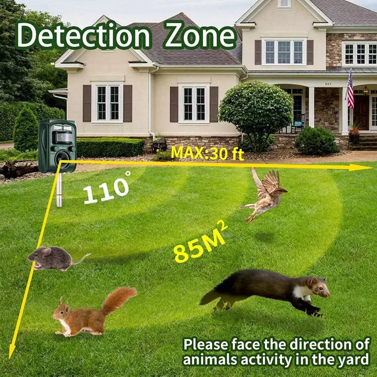 De frequenties kunnen hoorbaar zijn voor mensen. Zorg er om deze reden voor dat de verjagers geplaatst worden buiten bereik van mensen / uw huisdieren. De frequenties gaan niet door muren heen.