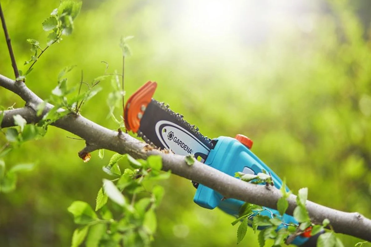 Zelfs met een ladder heeft u vaak geen of weinig toegang tot takken hoog in de boomtoppen. Maar ook op hoge hoogtes is snoeien noodzakelijk. Nu hoeft u helemaal niet meer te klimmen: met de GARDENA accu-telescopische snoeischaar TCS 20 / 18V P4A kunt u vanaf de grond werken met een stevige voet op de grond.