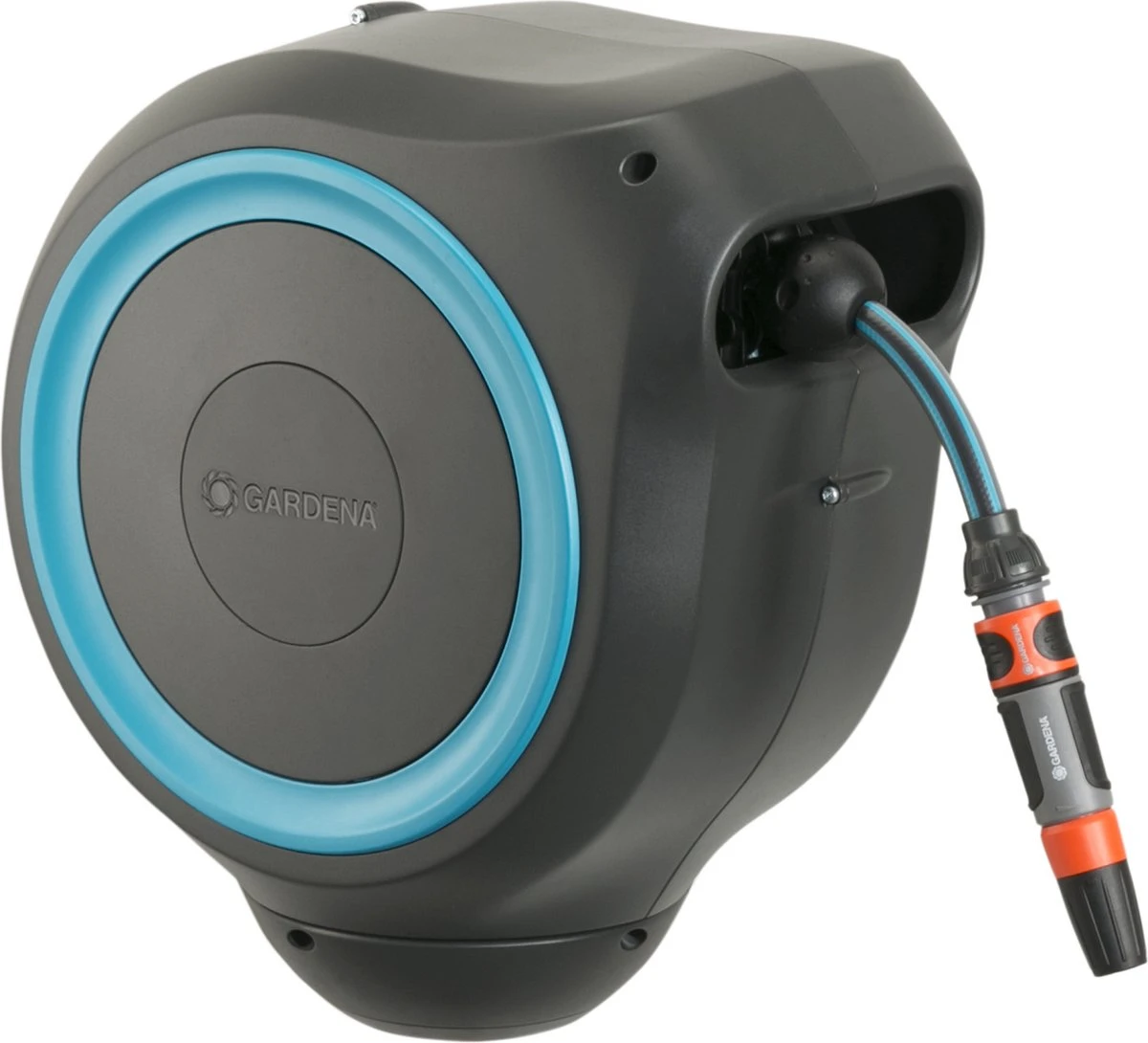 Tuinieren is handiger en gemakkelijker dan ooit met de wandslangenbox RollUp S. Deze helpt uw tuin netjes en opgeruimd te houden en voorkomt hinderlijk struikelgevaar als gevolg van een rondslingerende slang. De praktische slangopslag is eenvoudig aan de muur van uw huis te bevestigen en wordt met een flexibele aansluitslang aangesloten op de kraan. Dankzij de stevige muurbeugel kan de slangenbox meer dan 180 graden worden gedraaid, zodat u elke hoek van uw tuin moeiteloos kunt bereiken. Voor direct gebruik kunt u de tuinslang eenvoudig verlengen tot een lengte van maximaal 15 meter. De tuinslang wordt automatisch in heel korte intervallen vergrendeld zodra u stopt, wat betekent dat de slang eenvoudig en gemakkelijk te hanteren is. Door lichtjes aan het uiteinde van de slang te trekken, wordt de vergrendeling ontgrendeld en een ingebouwde stalen veer met innovatieve RollControl-technologie zorgt voor soepel en gecontroleerd oprollen. De RollControl beschermt de slangenbox en de omgeving tegen schade als gevolg van het te snel inrollen. Om knikken of knopen in de slang te voorkomen, heeft de box een geïntegreerde slanggeleider. Dankzij de slang- en kraanaansluitingen van het Original Gardena System kunt u eenvoudig en flexibel een verlengstuk of ander compatibel Gardena element op de slang aansluiten. U hebt altijd uw Gardena slangopzetstukken bij de hand. Ze kunnen onder de muurbeugel worden bevestigd en daar worden opgeborgen om ruimte te besparen. De Gardena wandslangenbox is UV- en vorstbestendig en kan het hele jaar door probleemloos aan de muur van het huis blijven bevestigd. Het hoogwaardige materiaal biedt u een lange levensduur en gebruiksgemak zonder onderhoud. Samen met de wandslangenbox ontvangt u een muurbeugel, een flexibele aansluitslang, alle benodigde Original Gardena System en montageonderdelen en een mondstuk met twee verschillende sproeiopties. Dit hoogwaardige product wordt geleverd met een garantie van vijf jaar van Gardena. Bewatering die altijd gebruiksklaar is , dankzij de Gardena wandslangenbox RollUp S.