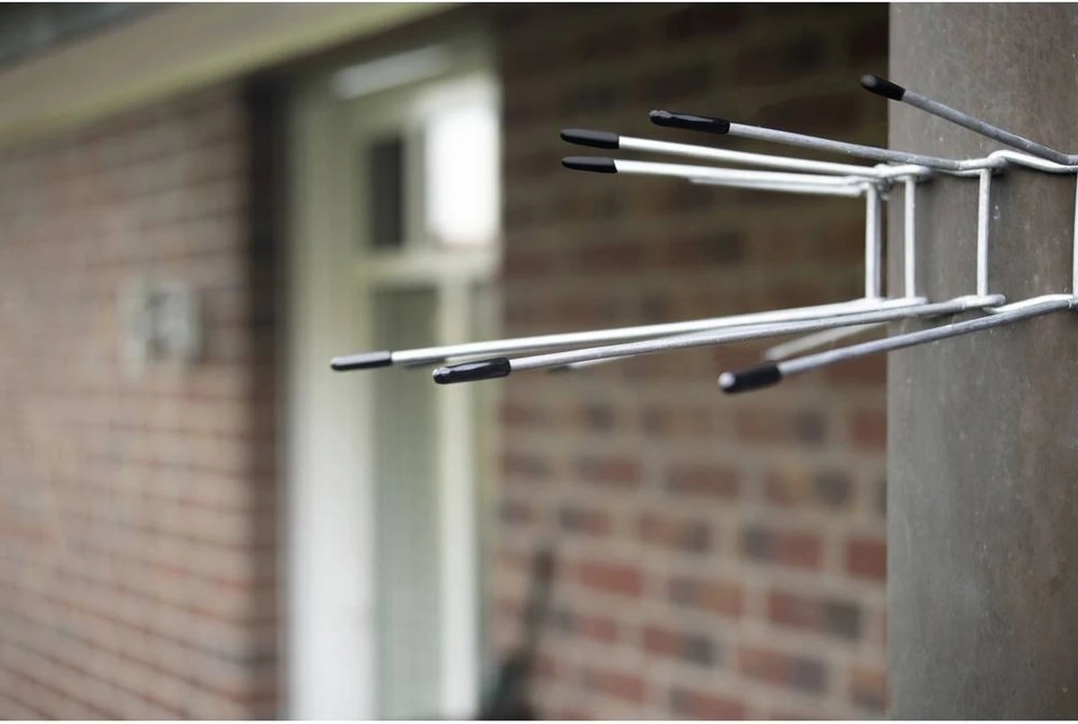 Met zijn lange spikes ziet de regenbuidelriem er weliswaar martiaal uit, maar in principe is hij slechts een klimbarrière die de weg naar boven bemoeilijkt. Bij grotere buisdiameters kan de riem ook met andere sets worden aangevuld.