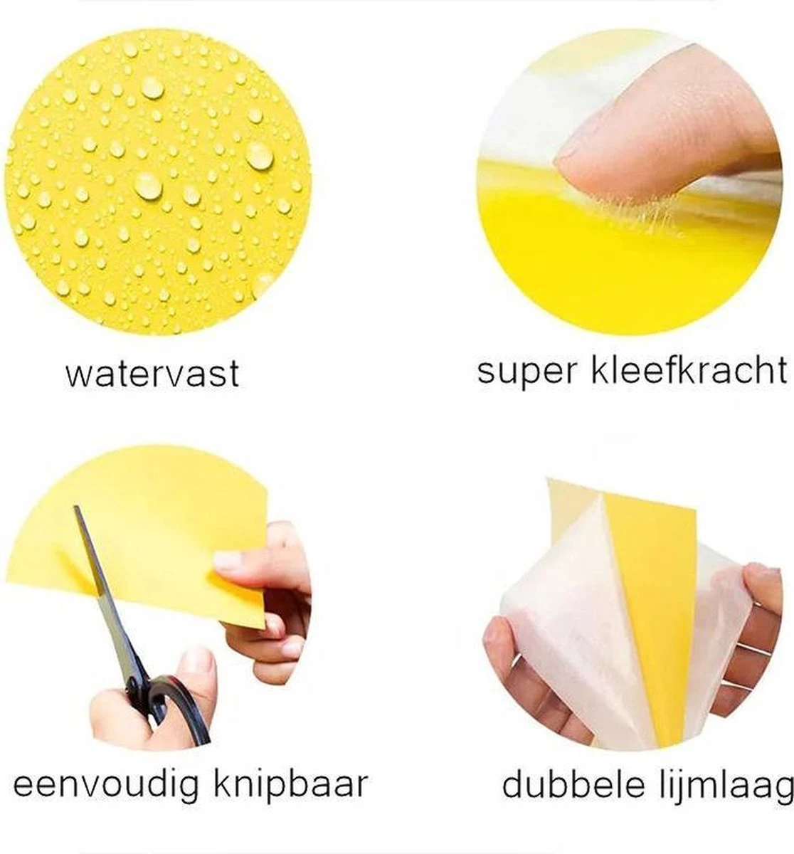 Deze lijmvallen zijn gemakkelijk in elke gewenste vorm te knippen en dus ook bruikbaar als kleine lijmvalletjes tussen bijvoorbeeld kamerplanten