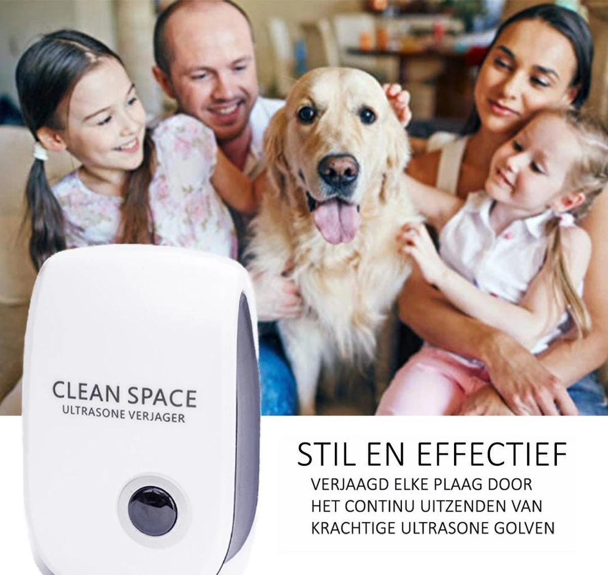Door de nieuwste ultrasone technologie is deze ongedierte verjager de beste manier om van alle ongewenste wezentjes in huis af te komen. Zonder giftige stoffen en net zoals alle CLEAN SPACE producten volledig mens, dier en milieuvriendelijk.