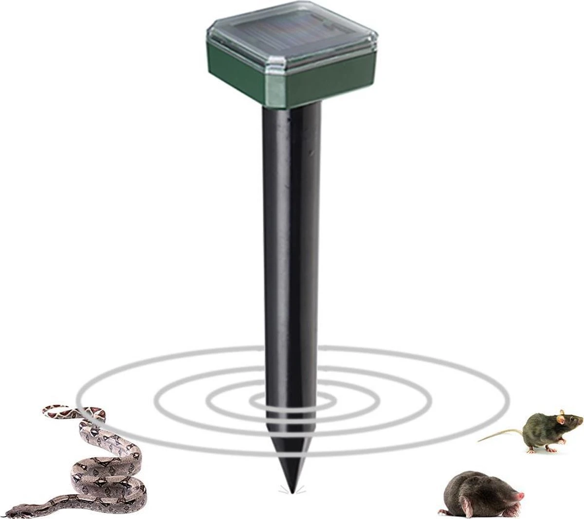 Weer alle mollen uit jouw tuin met deze mollenbestrijder. Verjaagt mollen, slangen, woelmuizen, spitsmuizen, ratten en andere knaagdieren. Elke 30 seconden wordt er een pulsering van ongeveer 400Hz de grond ingestuurd die de dieren afschrikt. Werkt ongeveer in een straal van 15 m2 per stuk Heb je een tuin van 30 m2 heb je er 2 nodig. Word opgeladen door zonne-energie dus er zijn geen batterijen nodig. Als hij volledig is opgeladen, kan hij 7 dagen zonder zon. Gemakkelijk en veilig in gebruik, geen gif en niet chemisch. Worden verkocht per stuk.