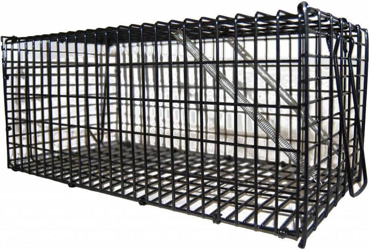 Deze extra grote en stevige zwarte draad vangkooi is zeer geschikt om ratten mee te vangen. De rattenval wordt kant en klaar geleverd en is zeer eenvoudig op te zetten.
