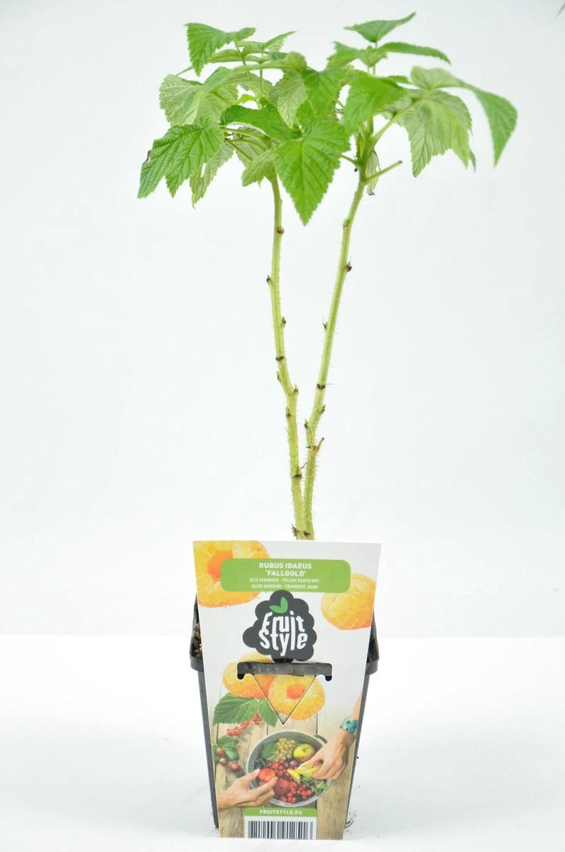 De Rubus Idaeus “Fall Gold” is een gele framboos met een lekkere zoete smaak. Deze plant draagt een geel-vruchtige herfstframboos. Deze zijn minder aromatisch dan de rode framboos, wel veel zoeter. Ze hoeven niet geleid of aangebonden te worden. De framboos is voor een herfstframboos vroeg rijp, en heeft doorgaans een grote opbrengst. Goed te plukken, groeit met sterke rechtopgaande stengels. Heeft baat bij wat extra vocht tijdens de groei van de vruchten, dat geeft extra sappig fruit.