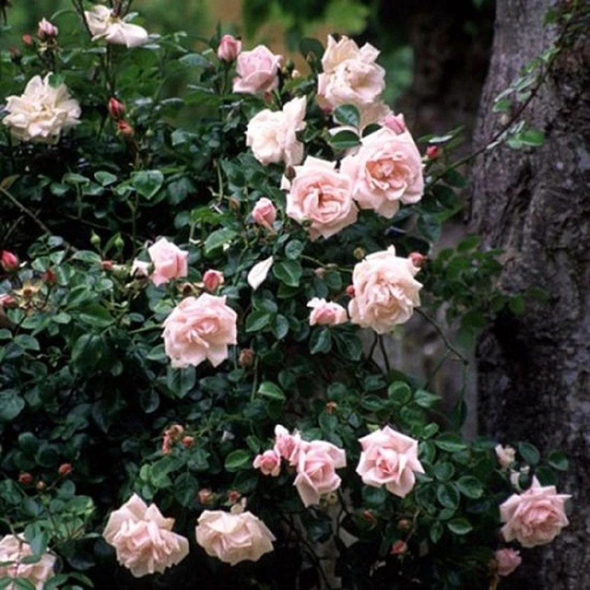New Dawn is een doorbloeiende (bloeiend gedurende de gehele bloeitijd), zachtroze klimroos. De middelgrote, gevulde boemen geuren heerlijk en bloeien alleenstaand of in trossen.