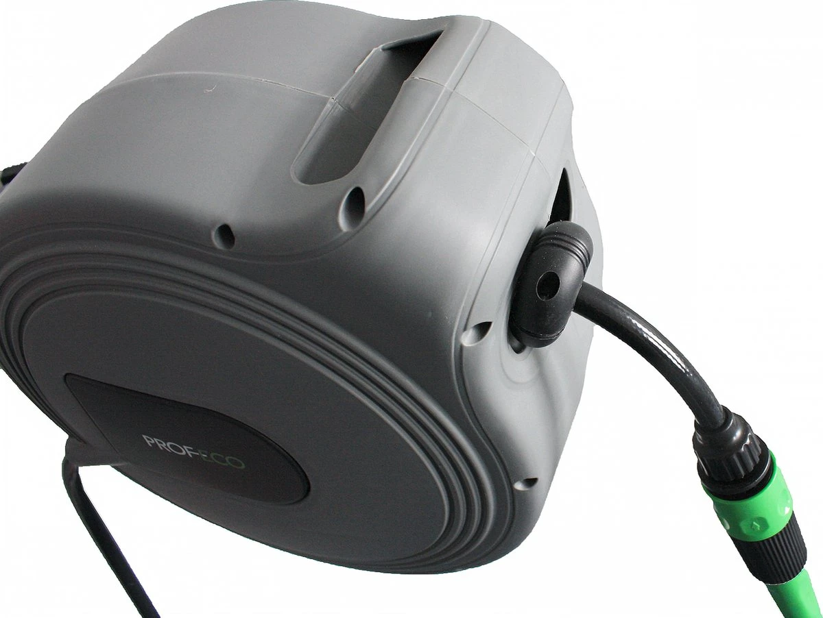 Deze Profeco wandslangenbox, ook wel muurhaspel of tuinslanghaspel genoemd, maakt het water geven aan bloemen en planten net even gemakkelijker. Uw tuin bewateren? Met deze semi-automatische Profeco tuinslangbox gaat dat uiterst eenvoudig. De wandbox is voorzien van een geintegreerde haspel, waarvan u de tuinslang eenvoudig uitrolt en na gebruik weer automatisch in de box laat rollen. De wandbox monteert u eenvoudig aan een muur, schutting of paal in uw tuin. Zeer geschikt om planten, bloemen en struiken efficiënt en gemakkelijk te bewateren. Het bereik van de tuinslang is bovendien ruim door een lengte van 15 meter en de 180 graden draaimogelijkheid van de wandbox. De tuinslang rolt zichzelf na gebruik automatisch op. U kunt de wandbox van de beugel afhalen en zo eenvoudig vorstvrij en veilig bewaren. De meegeleverde Profeco tuinspuit is bovendien traploos verstelbaar van een lichte mist tot een krachtige straal.