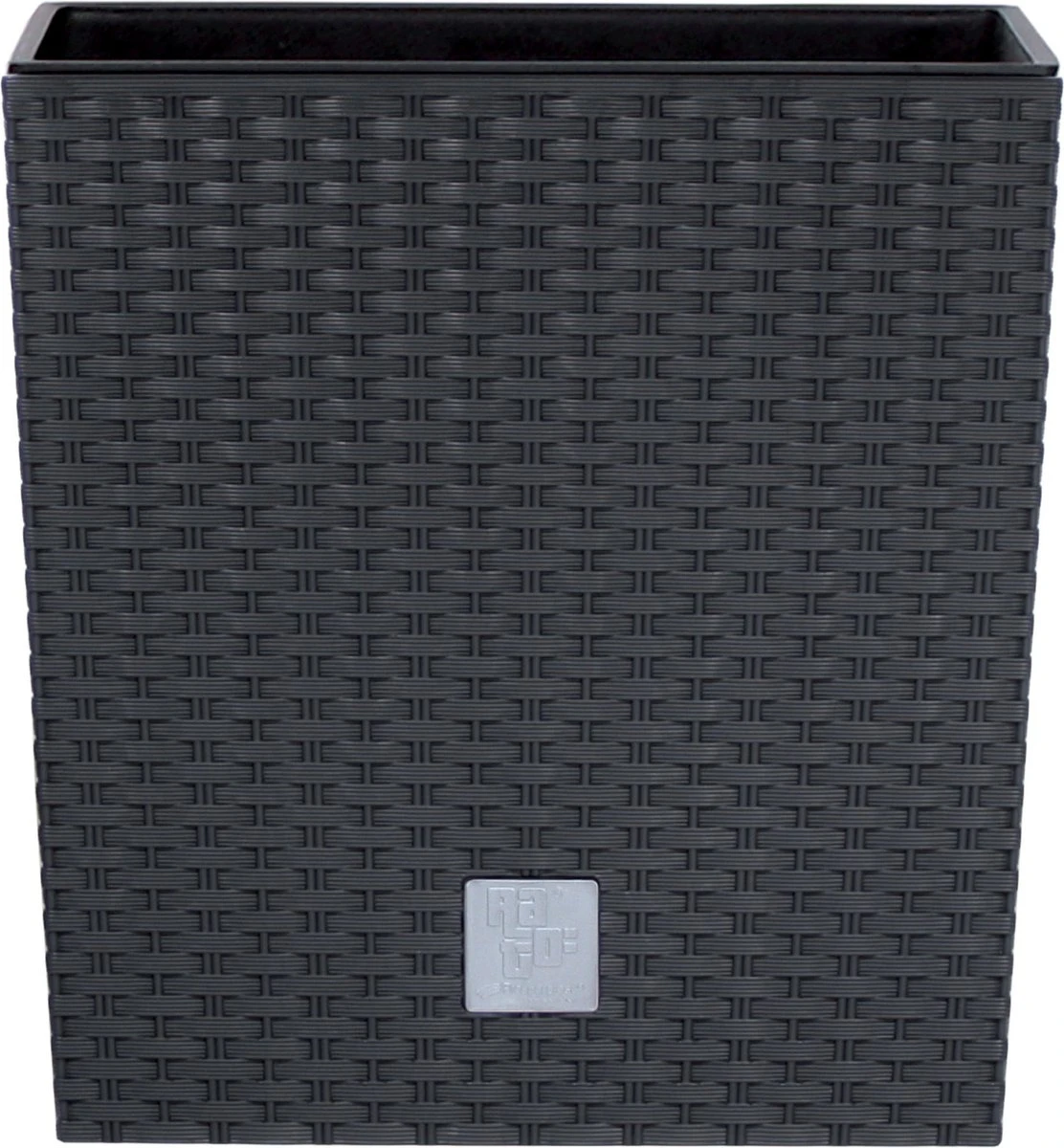 Kunststof Rato rotan bloempot/plantenpot antraciet 40 cm. Kras en stootvast met rotanvlechtwerk uitstraling. Inclusief uitneembare binnenpot/binnenbak, zonder afwateringsgaten. De bloempotten/plantenpotten zijn geschikt voor binnen en buiten gebruik. Afmetingen(LxBxH):40 x 40 x 41 cm. Inhoud: 37 liter inclusief binnenpot, 64 liter exclusief binnenpot.