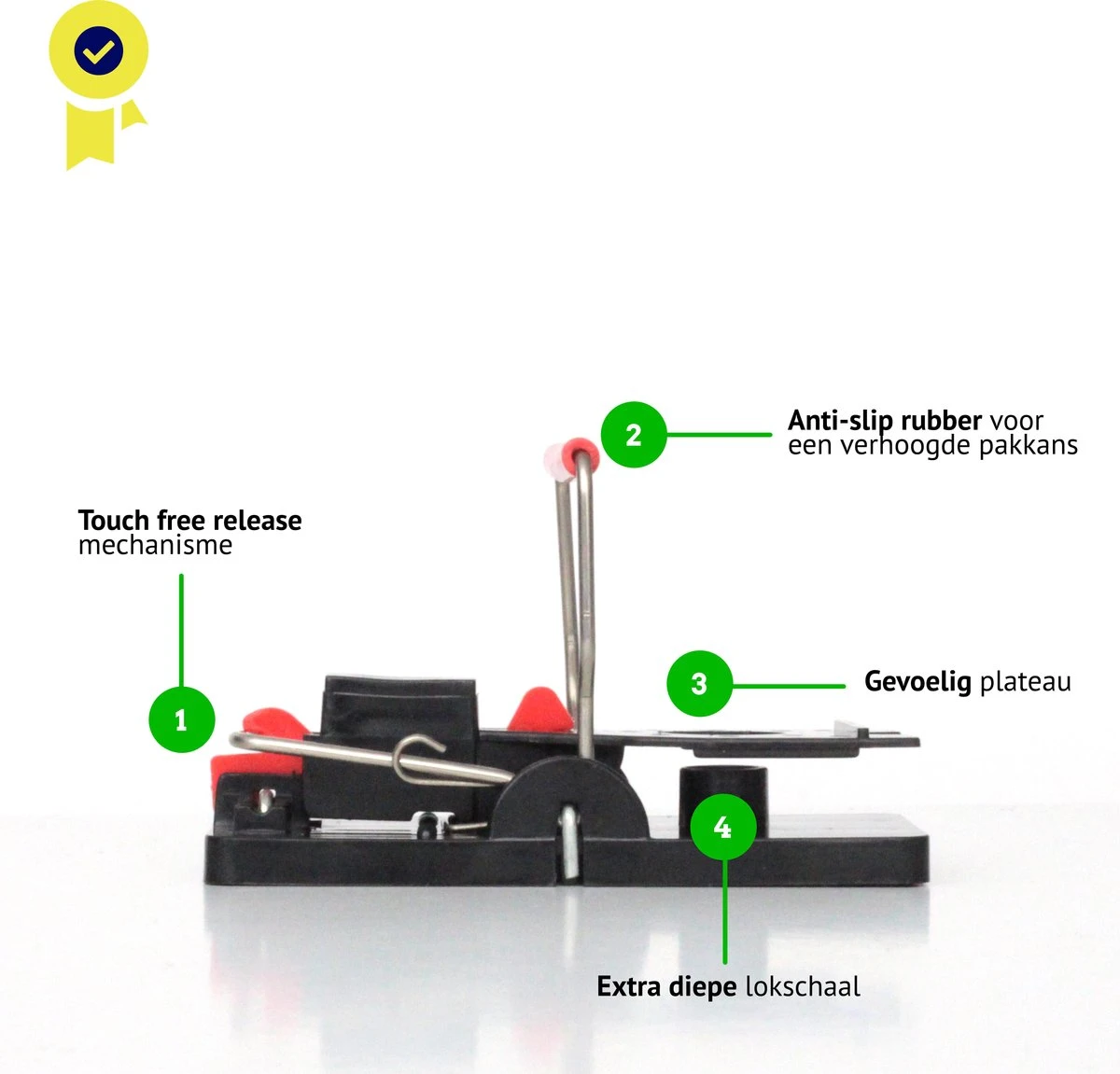 - Krachtige veer voorkomt dat muizen ontsnappen