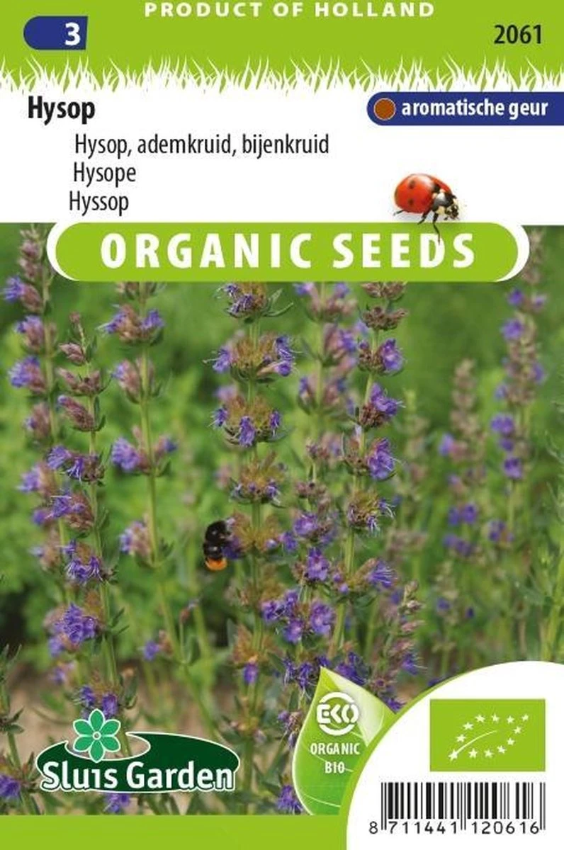 Hysop (Heilige plant) is een van de oudste kruiden en werd vroeger gebruikt om heilige gebouwen te reinigen. Hysopthee wordt gebruikt bij luchtwegontstekingen en buikkramp. U plukt de blaadjes en jonge, witte uitlopers. Als keukenkruid past het goed in salades, soepen, sauzen. Zeer aromatische plant en een prima bijen/vlindertrekker. Olie uit de groene blaadjes is grondstof voor parfum en likeur (Chartreuse). Hysop houdt ook de slakken op afstand.