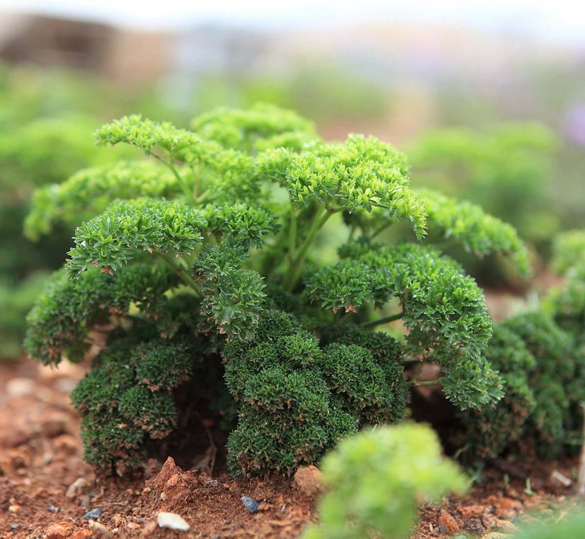 Overvloedige opbrengst van donkergroene gekrulde bladeren op stevige stengels. Zaaien in volle grond op lijnen met 25 cm tussenruimte of op boorden. Veel water geven. Voor winter gebruik onder glas of in bakken zaaien in augustus -september. Dit kruid groeit weelderig in rijke, frisse en regelmatig begoten grond. Peterseliezaad kiemt langzaam, daarom de zaden 24 u voor het zaaien in water weken.