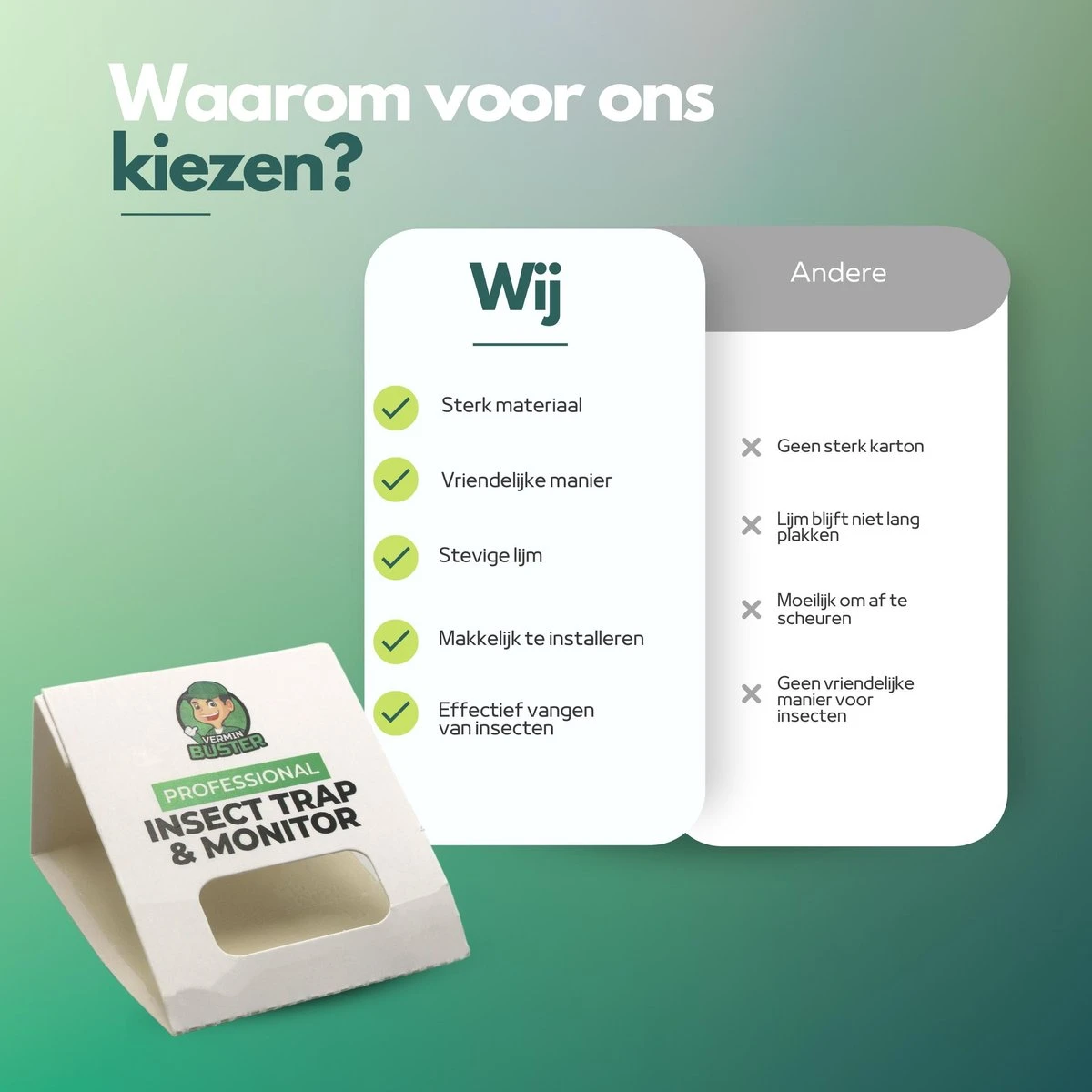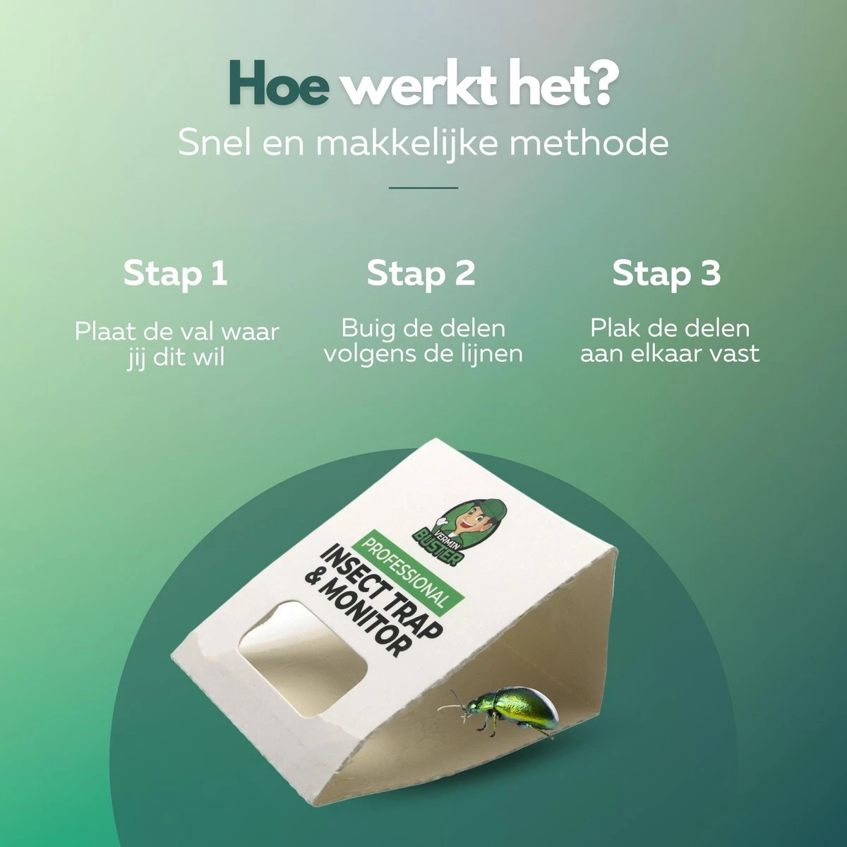 Het gebruik van de VerminBuster zilvervisjesvallen is erg simpel. Het is een gifvrije en reukloze val die speciaal gemaakt is voor het vangen van insecten. De val bootst de schuilplaats van insecten na wat de vangkans extra groot maakt. Door de onopvallende bedrukking past het product bij ieder interieur. Zodra de zilvervisjes de val betreden, blijven ze vastkleven op de lijmlaag.